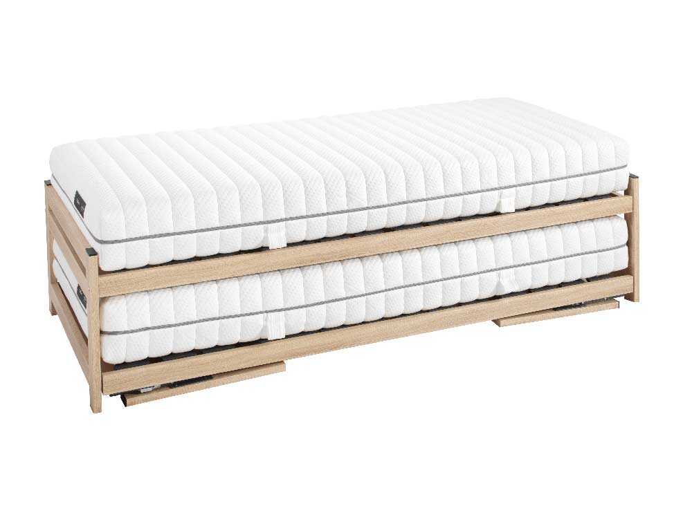 Comme lit d’appoint pour le week-end ou comme solution permanente, ce lit gigogne vous séduira grâce à ses fonctionnalités et son design sobre et élégant.
